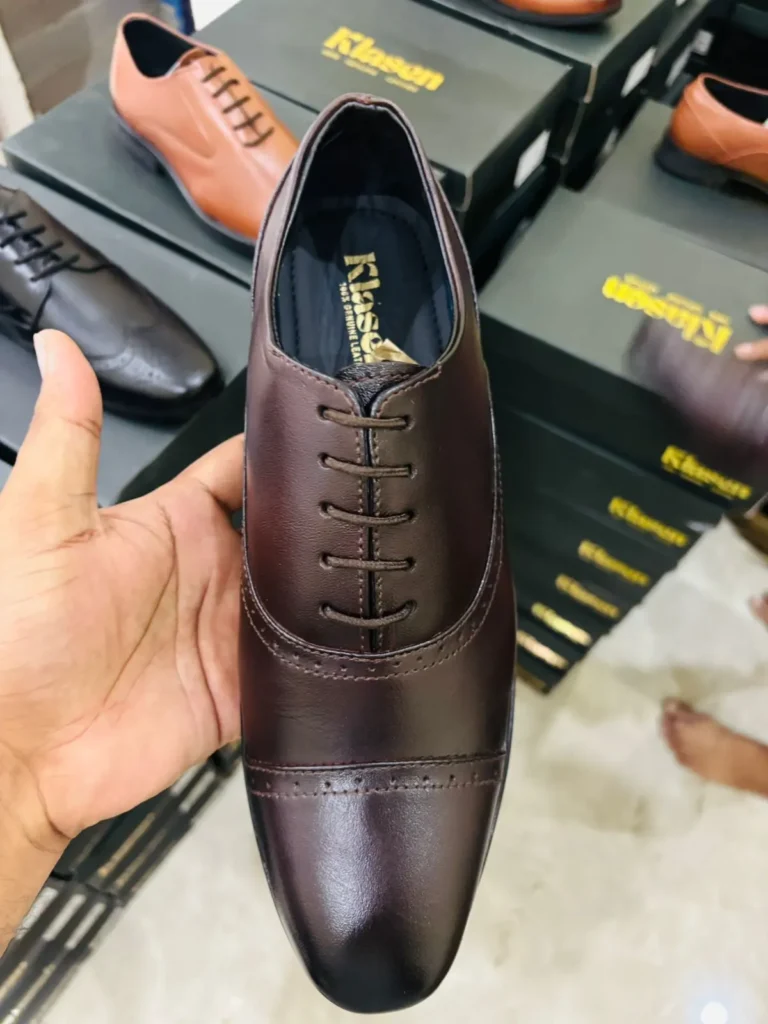 Oxford shoes are the epitome of formal footwear, characterized by their closed-lacing system and sleek silhouette. Indian manufacturers produce a variety of Oxfords, including cap-toe, plain-toe, and whole-cut designs, often using high-grade leather for durability and elegance.